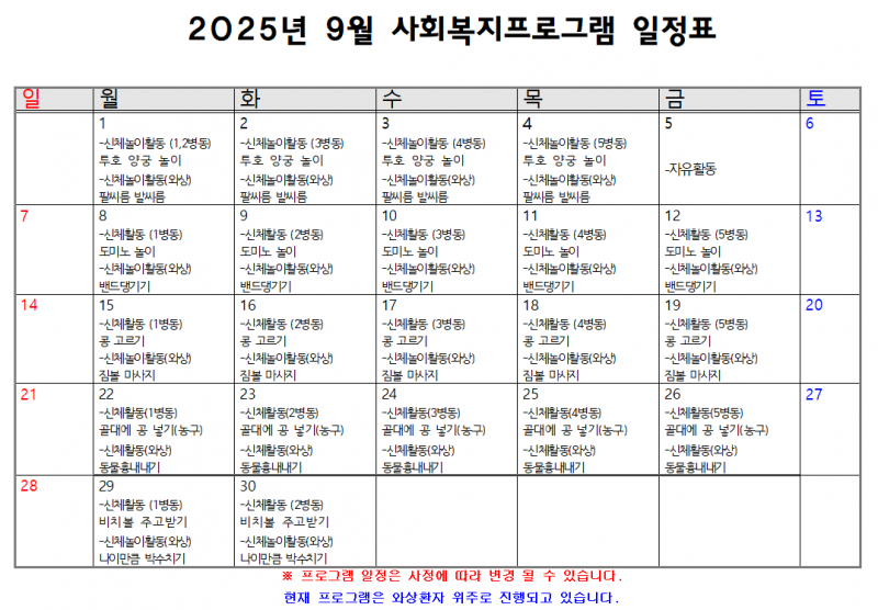 9월 프로그램 일정표